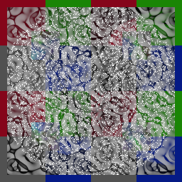 Test vgDrawImage in VG_DRAW_IMAGE_STENCIL mode, VG_PAINT_TYPE_PATTERN paint, VG_BLEND_DIFFERENCE_MZT blend mode, VG_MASKING disabled, VG_COLOR_TRANSFORM enabled (alpha-premultiplied drawing surface) |
